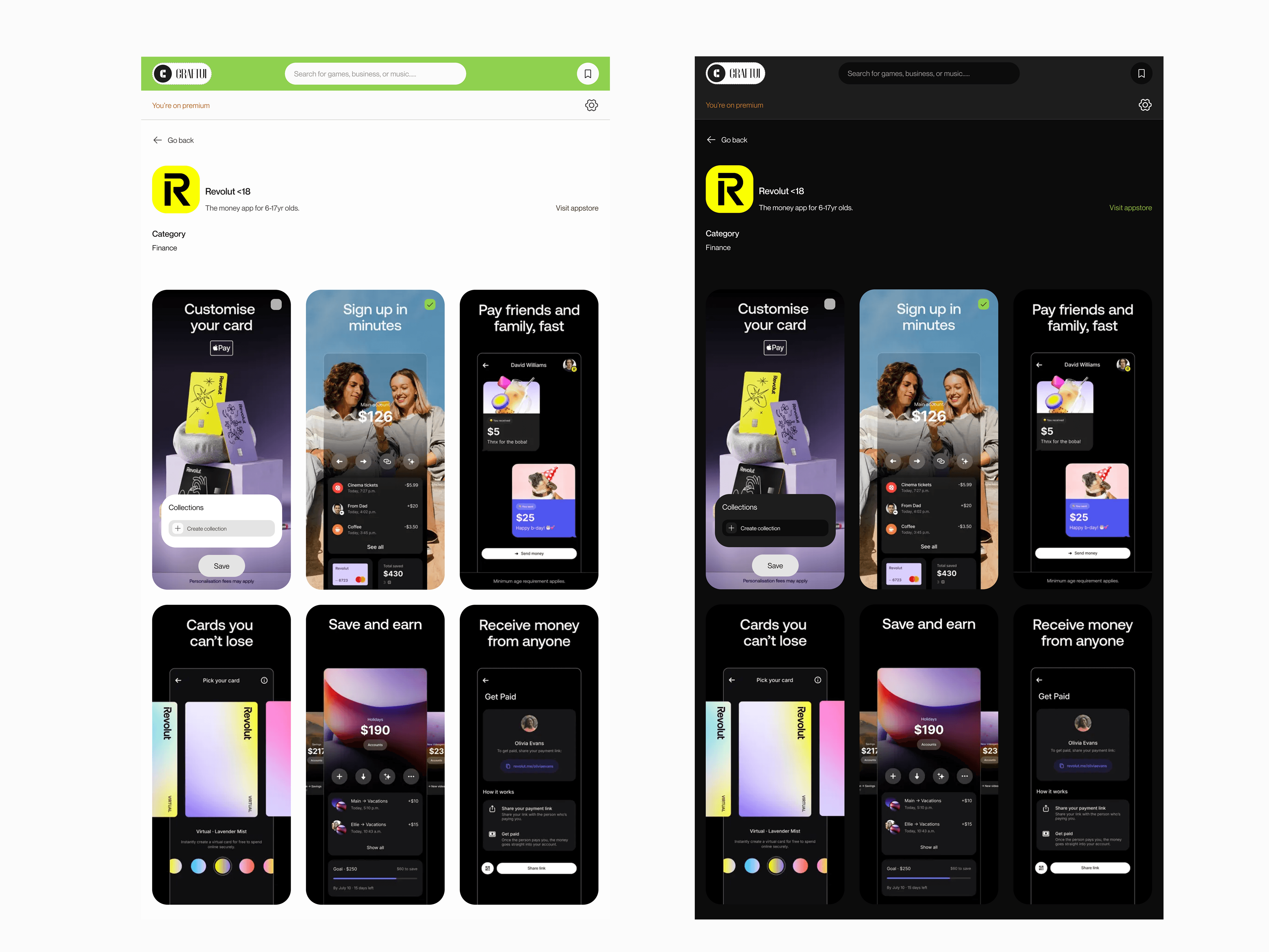 To help designers browse faster, inspiration is grouped into familiar categories such as: